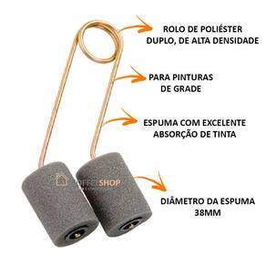 ROLO DE ESPUMA POLIÉSTER DUPLOMARCA: ROMAREF: 856-2•DESCRIÇÃO:-Rolo de espuma Poliéster Duplo, de alta densidade.-Diâmetro da espuma: 38mm-Para pinturas de grades. -Uso com todos os tipos de tintas.-Espuma com excelente absorção de tinta.-5CM de Largura.•MODO DE USAR:Antes do primeiro uso, lave o rolo com água.Ajuste o ângulo de abertura do rolo para o diâmetro da grade a ser pintada.Carregue o rolo uniformemente de tinta com ajuda da bandeja de pintura ROMA, pressionando para carregar de tinta.Encaixe os rolos entre a grade, de modo que o mesmos pintem os dois lados da grade ao mesmo tempo.•COMO LIMPAR:Remova o excesso de tinta.Tintas a base de água: lavar usando somente água.Tintas óleo ou esmalte: lavar com solventes minerais.