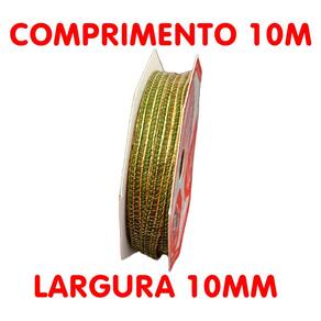 Rolo Fita Juta Gold Verde Decoração Natal 10mm 10m Kit 8pçs -