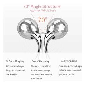 O diferencial do massageador é seu design de rolo 3D, que permite utilizá-lo tanto no rosto quanto no corpo, proporcionando um levantamento facial e consolidação da pele.