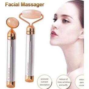 Rolo massageador facial pedra quartzo vibratório rosa jade