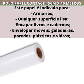 Rolo de papel adesivo liso branco vinil contact lavável para envelopamento de móveis paredes 45cm x 10 metros Contém: 01 papel adesivo contact branco com 10 metros este papel é indicado para: - armários; - qualquer superfície lisa; - encapar livros e cadernos; - envelopar móveis, geladeiras, paredes, plásticos e vidros; Este papel adesivo contact é a solução perfeita para transformar e renovar seus ambientes de forma prática e econômica. Com sua cor vibrante e acabamento de alta qualidade, ele permite que você crie decorações únicas em móveis, paredes, objetos e muito mais. Sua textura autocolante facilita a aplicação, permitindo que você personalize seus espaços de maneira fácil e sem sujeira. Além disso, o papel adesivo contact é durável e resistente, garantindo que sua decoração permaneça intacta por muito tempo. Seja na sala, no quarto, na cozinha ou em qualquer lugar da casa, este papel contact é a escolha certa para dar vida nova aos seus ambientes. Deixe sua criatividade fluir e transforme sua casa de forma rápida e econômica. Adquira já este rolo de 10 metros e comece a decorar com estilo informações adicionais: - não é 3d; - não é indicado para envelopamento de veículos; -não recomendado a aplicação do produto em superfícies porosas, oleosas, ou áreas expostas a forte calor; Especificações: Material: policloreto de vinil e papel siliconado. Dimensões: comprimento: 10 metros x larg.: 45cm Peso: aprox. 835g Cor: branca Marca: Não Informado