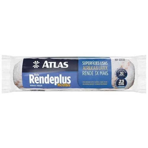 Informações do Produto: - Marca: Atlas - Rolo SEM cabo - Rolo multiuso de 23cm de microfibra para pintura gerais - Manta com 10mm de altura - Ideal para pintura em superfícies lisas - Use com tintas acrílica, látex pva e esmalte Ean: 7896380150038