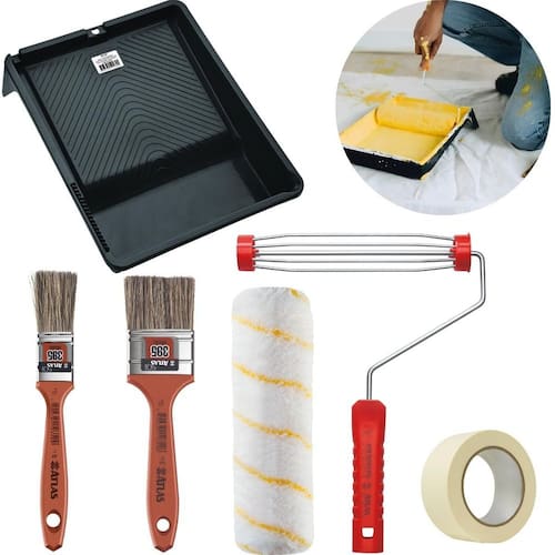 Rolo Pintura + Trincha 25Mm E 50Mm + Bandeja 2,7L + Garfo