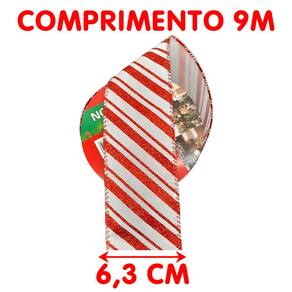 Rolos Fita Aramada Enfeite Natal Listrada 6,3cm 9m Kit 12pçs -
