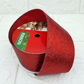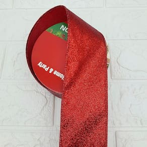 Rolos Fita Aramada Enfeite Natal Vermelha 6,3cm 9m Kit 2pçs -