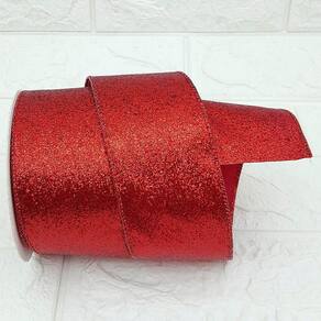 Rolos Fita Aramada Enfeite Natal Vermelha 6,3cm 9m Kit 8pçs -