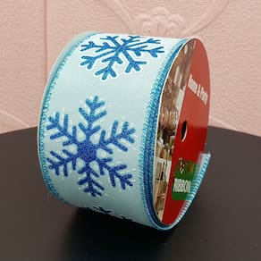 Kit 3 Fitas Aramadas Cor Branco Com Gliter Azul De 6,3cm E 9m De Comprimento;