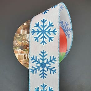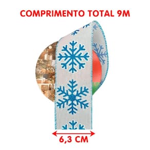 Rolos Fita Aramada Natal Flocos Neve Azul 6,3cm 9m Kit 3pçs -