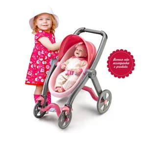 Além de possuir a encantadora a linha de bonecas bebê real a roma agora traz o carrinho de passeio para brincar onde quiser. Com as cores suaves, possui cinta para prender o seu bebê além de cadeira e capotas reclináveis. Um lindo acessório para brincar e passear. Agora a hora do passeio está ainda mais segura e divertida