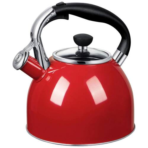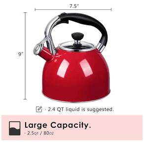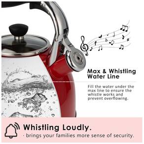 A tampa de vidro resistente ao calor se encaixa firmemente e vê claramente. O design elegante, com uma elegante cor azul marinho, é uma adição bem vinda a qualquer cozinha. A alavanca do bico de apertar e despejar é incorporada diretamente na alça antiderrapante resistente ao calor, fácil de operar e protege sua mão de queimaduras. A alça é conectada ao corpo por aço inoxidável que não derrete. Adequado para uso com fogão a gás, elétrico, cerâmico e a maioria dos fogões de indução A parte inferior da cápsula aquece rapidamente e retém bem o calor. Apito embutido assobiando alto quando a água está fervendo
