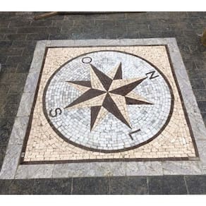 Especificações técnicas do mosaico: Feito com pedras - Mármores e granitos de todo o e importados da Europa e Ásia - para obter todas as cores desejadas em pedras naturais; Vem todo montado sobre tela, só colocar conforme manual de colocação, Resistência e Durabilidade em área interna e externa; Espessura de 10 mm Mesma espessura do porcelanato ou piso cerâmico Liso e agradável para uso diário; Mosaico feito integralmente à mão com técnica do mosaico romano;
