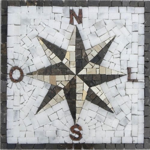 Especificações técnicas do mosaico: Feito com pedras - Mármores e granitos de todo o e importados da Europa e Ásia - para obter todas as cores desejadas em pedras naturais; Vem todo montado sobre tela, só colocar conforme manual de colocação, Resistência e Durabilidade em área interna e externa; Espessura de 10 mm Mesma espessura do porcelanato ou piso cerâmico Liso e agradável para uso diário; Mosaico feito integralmente à mão com técnica do mosaico romano;