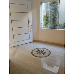 Pedras utilizadas: Travertino Bege, Mármore Branco, Granito Marrom Guaíba e Granito Preto são gabriel. Os tons podem variar conforme o lote das pedras