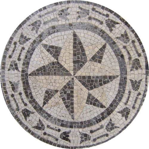 Piso mandala em mosaico feito com pedras