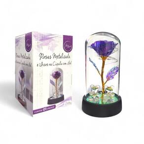 Rosa Metalizada Com Ursinho Na Cúpula Led Luminária Redoma