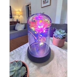 Rosa Metalizada Na Cúpula Led Luminária Redoma Encantada