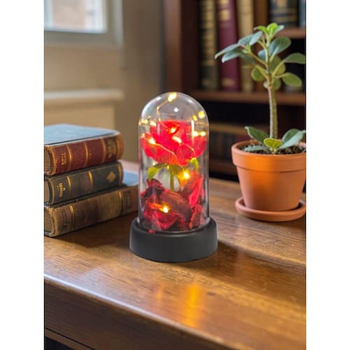 Rosa na cúpula led luminária redoma encantada rosa vermelha - presente romântico e decorativoa rosa na cúpula com led é um presente encantador que simboliza amor, carinho e elegância. Inspirada em histórias clássicas de romance e magia, essa luminária decorativa traz uma linda rosa vermelha protegida por uma redoma transparente, criando um visual sofisticado e cheio de charme.A iluminação led delicada destaca a beleza da rosa e cria um efeito luminoso suave e aconchegante, perfeito para compor ambientes românticos ou dar um toque especial à decoração. É uma peça que chama atenção pela elegância e pelo simbolismo, ideal para surpreender alguém especial.Compacta e versátil, pode ser utilizada em mesas de cabeceira, estantes, mesas de jantar, aparadores ou como peça decorativa em eventos e celebrações especiais. Uma excelente escolha para presentear em datas marcantes ou simplesmente demonstrar carinho de forma única.Principais características:- rosa artificial vermelha de alta qualidade- cúpula transparente estilo redoma decorativa- base preta elegante- iluminação led suave e decorativa- visual romântico e sofisticado- compacta e fácil de posicionar em qualquer ambiente- ideal como presente ou decoraçãoespecificações: material: plástico e acrílico alimentação: 3 baterias lr1130 1,5v inclusas funcionamento simples com iluminação led integrada dimensões aproximadas: altura: 14,5 cm largura: 6,5 cmpor que escolher a rosa na cúpula com led- presente simbólico e romântico- decoração delicada e elegante- iluminação suave que valoriza o ambiente- ideal para datas especiais e momentos marcantes- ótima opção para surpreender quem você ama- peça decorativa compacta e charmosaseja para decorar ou presentear, a rosa na cúpula com led transforma qualquer ambiente com romantismo, beleza e um toque de magia.Tags: rosa na cúpula, rosa na redoma, rosa encantada led, rosa vermelha decorativa, rosa eterna led, luminária rosa cúpula, rosa presente romântico, rosa bela e a fera, rosa iluminada led, rosa decorativa mesa, rosa artificial cúpula, rosa acrílica redoma, luminária decorativa romântica, rosa para presente, rosa romântica decoração, rosa com luz led, redoma rosa decorativa, rosa decoração quarto, rosa decoração mesa, rosa decorativa pequena, rosa presente dia dos namorados, rosa presente aniversário, rosa lembrança romântica, rosa iluminada decorativa