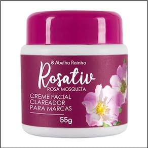 O Abelha Rainha Rosativ Rosa Mosqueta Creme Clareador Facial Para Marcas 55g é um tratamento intensivo desenvolvido para ajudar a atenuar marcas e manchas na pele do rosto. Formulado com óleos naturais, incluindo rosa mosqueta, um ingrediente conhecido por suas propriedades regeneradoras e cicatrizantes, o creme promove a renovação celular e o clareamento gradual de manchas, como as causadas por acne, melasma, hiperpigmentação e outras marcas na pele. A rosa mosqueta é rica em ácidos graxos essenciais e vitaminas, que ajudam a hidratar e nutrir a pele, ao mesmo tempo em que favorecem a regeneração e o clareamento das áreas afetadas. Sua fórmula também é eficaz na melhoria da textura da pele, deixando-a mais suave, uniforme e com um tom mais homogêneo. Além de promover o clareamento, o Abelha Rainha Rosativ Rosa Mosqueta Creme Clareador Facial ajuda a melhorar a elasticidade e a firmeza da pele, proporcionando um efeito mais jovem e saudável. Sua textura é leve, de fácil absorção, e pode ser Utilizado diariamente, oferecendo resultados visíveis com o uso contínuo. O frasco de 55g é ideal para tratamentos diários, sendo uma excelente opção para quem deseja melhorar a aparência das marcas e manchas faciais de forma eficaz e segura. Marca: Não Informado