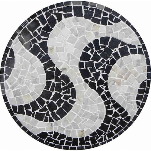 Especificações técnicas do mosaico: Feito com pedras - Mármores e granitos de todo o Brasil e importados da Europa e Ásia - para obter todas as cores desejadas em pedras naturais; Vem todo montado sobre tela, só colocar conforme manual de colocação, Resistência e Durabilidade em área interna e externa; Espessura de 10 mm Mesma espessura do porcelanato ou piso cerâmico Liso e agradável para uso diário; Mosaico feito integralmente à mão com técnica do mosaico romano;