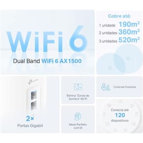 Conexões mais rápidas: Wi-Fi 6 com velocidades de até 1.500 Mbps - 1.201 Mbps em 5 GHz e 300 Mbps em 2,4 GHz.† Conecta mais dispositivos: As tecnologias OFDMA e MU-MIMO quadruplicam a capacidade para permitir a transmissão simultânea para mais dispositivos.? Cobertura Wi-Fi Ampliada: Obtenha uma cobertura perfeita em toda a casa com um sinal Wi-Fi residencial mais estável e mais forte gerado pelo Wi-Fi 6.‡ Maior estabilidade: Por meio da maior redução da latência, jogos, vídeo chamadas e outras tarefas que demandam muitos dados rodam sem travamentos. Crie uma única Rede Wi-Fi: Duas ou mais unidades Deco formam uma rede para toda a casa que seleciona automaticamente a melhor conexão à medida que você se desloca pelo ambiente. Controle Parental Robusto – Limite o tempo on-line e bloqueie sites inadequados de acordo com perfis exclusivos que você cria para cada membro da família.* Fácil Instalação e Configuração: O aplicativo Deco orienta você na configuração passo a passo.