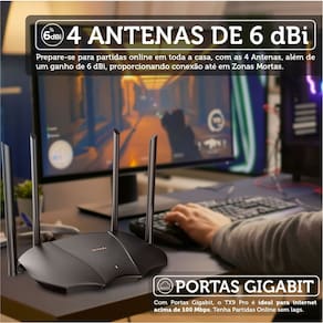 - Portas LAN: 3x Gigabit (10/100/1000 Mbps)