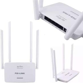Roteador wireless 300mbps 4 antenas lv-wr08 pix link Excelente roteador para quem precisa de mais potência com praticidade. De fácil configuração, basta conectar via wi-fi ou porta lan.. Pequeno e de lindo designer, se acomoda muito bem em qualquer lugar, de baixo consumo e com 4 antenas de 5dbi cada, tem alcance surpreendente, mesmo com barreiras. Em testes realizados, conseguimos alcançar 30m com barreiras (3 paredes de alvenaria)..