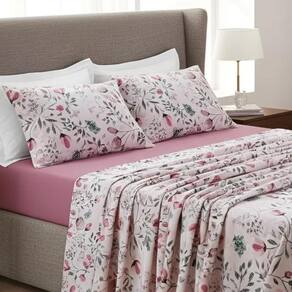 Composto por um lençol de baixo com elástico, um lençol de cima e uma fronha coordenada, este conjunto é confeccionado com tecido de alta qualidade de 200 fios por polegada quadrada. Isso significa que proporciona um toque suave e agradável para uma noite de sono tranquila.