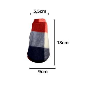 Pescoço - 5,5 cm; abdômen/tórax - 9 cm; comprimento - 18 cm.