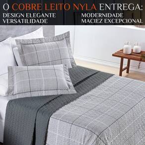 Roupa De Cama Tamanho Queen Box Nyla Kit Cobre Leito Estampado 200 Fios Avere Cor: Cinza Renove seu quarto com a sofisticação do Kit Nyla 200 Fios Transforme seu quarto com a elegância e o conforto que você merece Está cansado das roupas de cama que perdem a qualidade rapidamente e não oferecem o conforto que você deseja Pare de se frustrar com produtos de baixa qualidade Com o Kit Cobre Leito Nyla, você terá uma roupa de cama feita com 200 fios de puro algodão, estampada e com design de luxo, oferecendo durabilidade, conforto e um visual sofisticado para o seu quarto. Imagine deitar-se todas as noites em uma cama com uma roupa de cama super macia, de toque suave, que proporciona um sono tranquilo e confortável. Esse é o conforto e a elegância que o Kit Cobre Leito Nyla oferece para você Contém na embalagem: 01 Colcha 2,60m x 2,40m 02 Porta Travesseiros Estampados 70cm x 50cm Composição:tecido MICRO PERCAL 200 FIOS : 100% Poliéster 1. O que está incluído no conjunto O conjunto inclui um cobre leito dupla face, dois porta-travesseiros e um lençol com elástico. 2. Qual é a composição do tecido O tecido é de alta qualidade com 200 fios. 3. Como cuidar da Roupa de Cama Nyla Lave à máquina em ciclo suave com água fria e seque à sombra para manter a maciez e as cores. 4. O tecido é antialérgico Sim, o tecido é hipoalergênico, ideal para pessoas com pele sensível ou alergias. 5. Este conjunto é adequado para todas as estações Sim, o algodão respirável proporciona conforto térmico em qualquer estação do ano. 6. Qual é a de qualidade do produto Não perca a oportunidade de transformar suas noites com o conforto e a elegância da Roupa De Cama Tamanho Queen Box Nyla. Adquira já o seu kit e sinta a diferença Compre agora