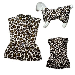 - vestido para cachorro em soft; - ideal para todas as ocasiões, seu pet vai amar; - extremamente gostoso, macio, leve mas muito quentinho; - lavável em maquina e a mão. - vestido na cor: onça; - laço na cor do vestido; Medidas - tamanho G: Medidas aproximadas- pescoço: 30 cm de circunferência; abdômen / tórax: 42 cm de circunferência; comprimento: 40 cm. Marca: Nicapet Ean: 7897839197246