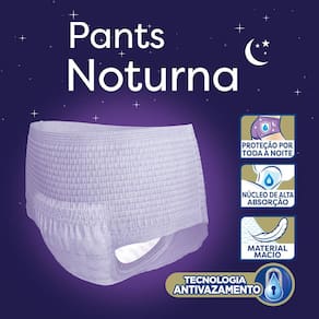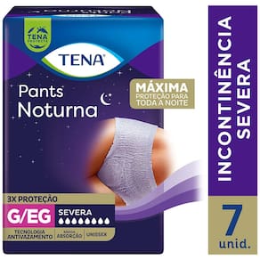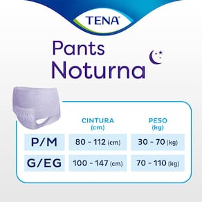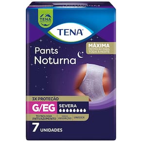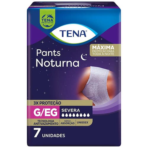A Roupa Íntima Tena Pants Noturna G/EG é uma roupa íntima descartável e unissex de rápida absorção, proporcionando ao usuário máxima proteção durante toda a noite. É indicado para pessoas com mobilidade e com perdas de urina severa.