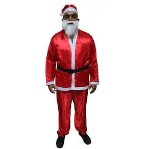 1 Roupa De papai Noel - 5 Peças: Gorro, Barba, Cinto, Calça e Paletó