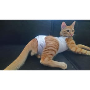 MODELO para proteção a pontos cirúrgicos, castrações e cirurgias. A roupa é um excelente recurso para proteger os felinos de contaminações e o contato do animal com as superfícies da pele em fase de cicatrização. Impede principalmente que eles retirem os pontos cirúrgicos, curativos, medicamentos e que se machuquem. O tecido é algodão com elastano e se ajusta ao corpo do animal. Atenção: As referências de medidas são aproximadas devido a variação de porte físico e peso de cada animal e raça. Por isso, tenha atenção às medidas para evitar trocas e cancelamentos. Meça o comprimento das costas do final do pescoço até o início da cauda e o diâmetro do peitoral do cachorro e confira na tabela abaixo: Tabela de Medidas: Roupa Pós cirúrgica para gatos Tamanho 1: Comprimento costas: 26 cm Largura Peitoral: 23-29 cm Sugestão : Gatos Filhotes Homologação Anvisa: 80118180004 Ean: 7898662312035