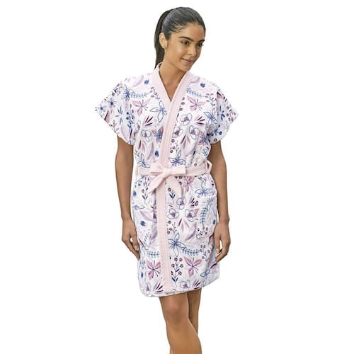 Roupao Aveludado Adulto Curto Estampado Luau G O roupão Aveludado da coleção Luau traz o romantismo e delicadeza das flores em sua estampa, formando uma composição clássica e elegante. Ele possui o jeito Lepper, com um tecido que apresenta a exclusiva qualidade da felpa que não desfia, possui ótima absorção, durabilidade e fica mais macio a cada lavagem, além de ter sua pala aveludada, conferindo um conforto ainda maior. A hora do banho e os momentos de relaxamento podem ser mais leves, mais revigorantes, mais Lepper Disponivel no Manequim Modelo curto: M Altura 93 cm x 57,8 cm Largura G Altura 98 cm x 65,7 cm Largura GG Altura 102,5 cm x 71,5 cm Largura .55% Algodão 45% Poliéster Gramatura: 280g/m