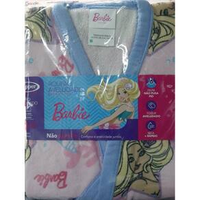 Roupão Aveludado Infantil Quimono Estampa Barbie 2 a 7 anos O roupão aveludado da coleção Barbie ilustra a charmosa boneca em sua versão sereia, rodeada de lindas conchas e pérolas, destacando toda a beleza do fundo do mar. Um ótimo presente para meninas. Embarque em um mundo de diversão e alegria na hora do banho, tudo isso com o conforto e a qualidade que só os produtos Lepper oferecem Para os pequenos aproveitarem ainda mais nossos roupões, pensamos em uma modelagem inteligente com dois tamanhos únicos: veste de 2 a 7 anos e de 8 a 12 anos. Agora, além da tecnologia da felpa que não puxa fio e das estampas vibrantes, os roupões podem acompanhar as crianças por mais tempo O roupão aveludado é macio, aconchegante e apresenta o verso felpudo, o que garante uma absorção ainda melhor. Essa é a magia dos produtos Lepper na rotina dos pequenos. Tamanho: 02 a 07 anos Marca: Não Informado