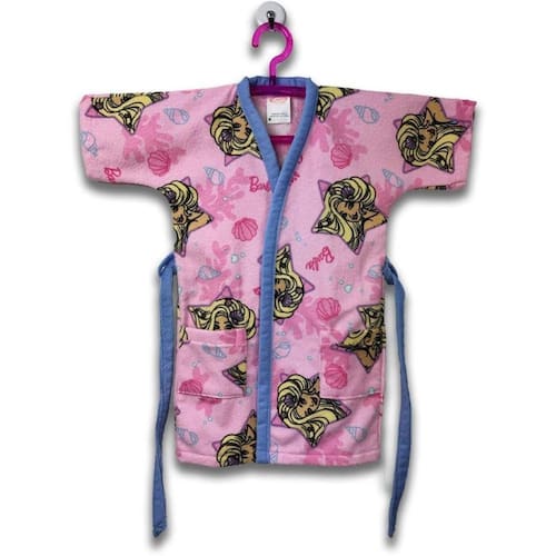 Roupão Aveludado Infantil Quimono Estampa Barbie 2 a 7 anos O roupão aveludado da coleção Barbie ilustra a charmosa boneca em sua versão sereia, rodeada de lindas conchas e pérolas, destacando toda a beleza do fundo do mar. Um ótimo presente para meninas. Embarque em um mundo de diversão e alegria na hora do banho, tudo isso com o conforto e a qualidade que só os produtos Lepper oferecem Para os pequenos aproveitarem ainda mais nossos roupões, pensamos em uma modelagem inteligente com dois tamanhos únicos: veste de 2 a 7 anos e de 8 a 12 anos. Agora, além da tecnologia da felpa que não puxa fio e das estampas vibrantes, os roupões podem acompanhar as crianças por mais tempo O roupão aveludado é macio, aconchegante e apresenta o verso felpudo, o que garante uma absorção ainda melhor. Essa é a magia dos produtos Lepper na rotina dos pequenos. Tamanho: 02 a 07 anos Marca: Não Informado