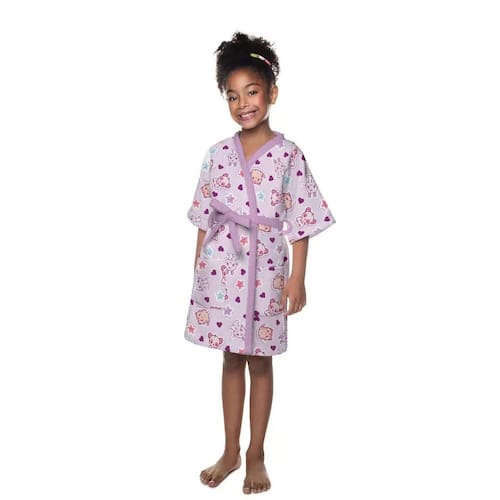 Roupao Aveludado Infantil Quimono Estampado Pet love G O roupão aveludado da coleção Pet Love ilustra a graça dos bichinhos entre corações, estrelinhas e muita fofura. Seu tecido é super macio, aconchegante e apresenta o verso felpudo para uma absorção ainda melhor. É a magia do Jeito Lepper entrando na rotina dos pequenos.