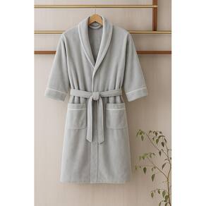 Seu tecido plush peluciado proporciona um toque incrivelmente macio, que acaricia a pele com delicadeza e aquece na medida certa. Confeccionado em 100% poliéster com gramatura de 300g/m, o roupão une leveza e isolamento térmico, garantindo praticidade e conforto ao mesmo tempo. O acabamento cuidadoso, aliado às cores discretas e lisas, traz sofisticação e charme a uma peça essencial para o inverno.