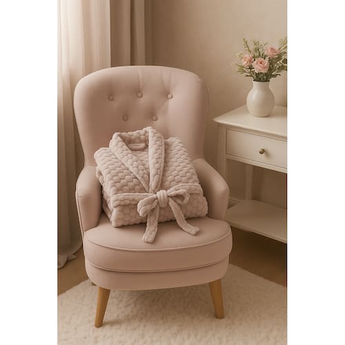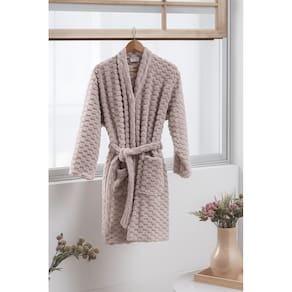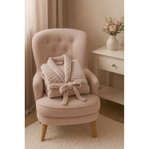 Sua estrutura é em formato de um desing 3D, o que o torna lindo e charmoso. Seu tecido plush Peluciado proporciona um toque incrivelmente macio, que acaricia a pele com delicadeza e aquece na medida certa. Confeccionado em 100% poliéster com gramatura de 280g/m², o roupão une leveza e isolamento térmico, garantindo praticidade e conforto ao mesmo tempo. O acabamento cuidadoso, aliado às cores discretas, traz sofisticação e charme a uma peça essencial para o inverno.