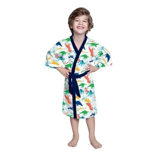 Roupao Felpudo Infantil Quimono Estampado Jurassico PP O roupão felpudo da coleção Jurássico estampa toda a diversão do fascinante e misterioso universo dos dinossauros, com pegadas e elementos da idade da pedra. Com pala e cinto na cor azul marinho, seu tecido apresenta a exclusiva qualidade Lepper da felpa que não desfia, possui ótima absorção e se torna mais macio a cada lavagem. A hora do banho ou saída da piscina dos pequenos pode ser mais divertida, mais colorida, mais Lepper Disponível nos tamanhos: PP 2 a 4 anos Composição:95% Algodão 05% Poliéster Gramatura: 260g/m