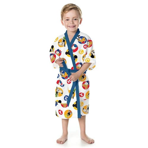 Uma ótima opção para saída de banho são os roupões. Eles cobrem, secam, são confortáveis e ainda tem estampas lindas!