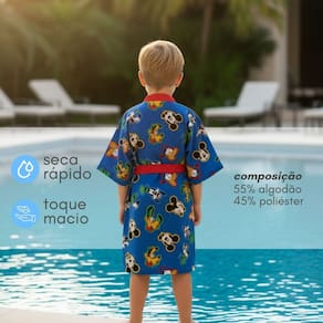 Com modelagem tipo quimono e disponível em vários tamanhos infantis, é a escolha perfeita para unir conforto, diversão e estilo, deixando a rotina dos pequenos ainda mais alegre.