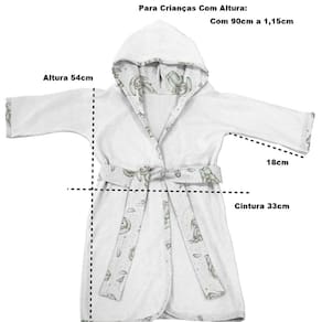 Conteúdo e Medidas: Roupão com Capuz Malha Plush Atoalhado - Infantil - 01 Peça Tamanho Único ( 0 a 3 anos) Recomendado Crianças com Altura entre 90cm à 1,15m
