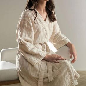 Atributos: Roupão unisex; Toque macio; Tecido jacquard fio tinto; Gola aplicada, bolso e manga 3/4; Etiqueta diferenciada