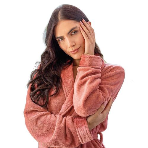 Roupão Microfibra Gola Texturizada Sofisticata Gg Atlântica - GG - Coral