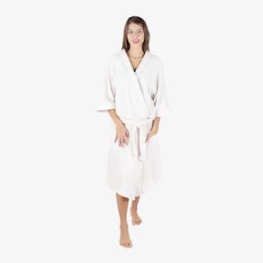 O roupão de microfibra possui toque macio, manga 3/4 e 2 bolsos!