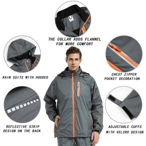 - À prova d'água e respirável: roupas de chuva para homens e mulheres à prova d'água, 65% nylon, 35% PVC. O material dá aos trajes de chuva resistentes ao desgaste e também é macio, o forro interno de malha proporciona excelente fluxo de ar, mantém a pele respira livremente. Mantém você completamente seco em qualquer clima