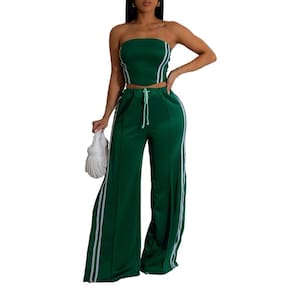 Conjunto casual combinando Estilo: moderno, fofo, sexy, - O conjunto de duas peças para mulheres é feito de tecido amigo da pele, macio, ótimo elástico e confortável. Roupas sexy de duas peças para mulheres podem proporcionar uma experiência de uso confortável - O conjunto de duas peças para mulheres saindo apresenta top tubinho agitado, sem alças, sem mangas, cintura elástica, calça de perna larga de cintura alta com lateral de lodo. Macacões elegantes criam estilo casual e fazem você parecer chique no verão quente - Conjunto de duas peças para mulheres sexy, roupas de brunch para mulheres, conjuntos de duas peças para mulheres, roupas de férias para mulheres, roupas de aeroporto para mulheres, roupas de verão de 2 peças para mulheres, roupas de festa para mulheres, conjuntos de calças femininas de 2 peças, roupas de aniversário para mulheres - Ocasião: Conjunto de duas peças para mulheres no verão, perfeito para festa de verão na praia, clube, encontro, rua, sair, aeroporto, férias, diariamente, etc. Combinando com saltos ou tênis, conjuntos fofos para mulheres fazem você parecer casual e sexy - Tamanho e cor: vermelho/preto/verde. P/M/G/GG/2GG. Consulte a tabela de tamanhos antes de fazer seu pedido