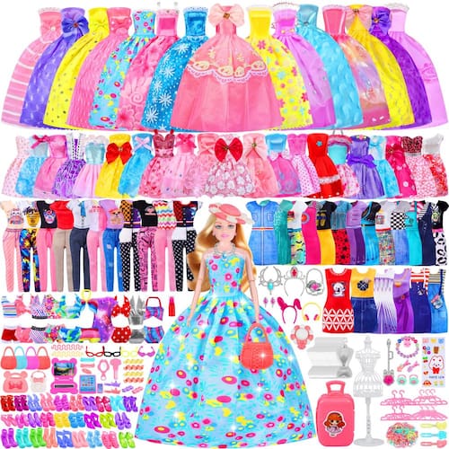 342 peças de roupas e acessórios de boneca com boneca, vestidos de princesa, vestidos da moda, blusa, calças, maiôs, sapatos, cabides e outros acessórios, brinquedo de fantasia para meninas e crianças - Roupas de boneca e acessórios para meninas: o pacote inclui 1 boneca, vestidos de princesa, vestidos modernos, calças, macacão, biquíni, chapéu, óculos, bolsa, grampos de cabelo, caderno, adesivo, pente espelhado, cabides e muito mais. Adequado para bonecas de 29 cm. - Design moderno: todas as roupas de boneca são projetadas exclusivamente e cuidadosamente trabalhadas. Estilos sofisticados e versáteis, materiais de alta qualidade e design de fecho aderente, fácil de colocar e tirar. - Rica imaginação: uma variedade de roupas e acessórios satisfazem o prazer das crianças de se vestir. As crianças podem vestir a boneca de acordo com suas próprias preferências e enriquecer sua imaginação. - Presente perfeito para meninas: brinquedos de fantasia para meninas, brinquedos infantis incríveis para festa de meninas, presente de aniversário, presente de Halloween, presente de Natal, atividade familiar divertida. Brinquedos para meninas de 3, 4, 5, 6, 7, 8, 9, 10, 11 e 12 anos de idade. - NOTA: Estes são estilos aleatórios, as roupas serão escolhidas do estoque disponível. Atualizaremos os estilos regularmente e podemos não atualizar as imagens a tempo, as imagens mostram apenas uma parte delas. Mesmo que as imagens não sejam atualizadas imediatamente, isso não afetará o elemento surpresa e satisfação ao fazer sua compra.