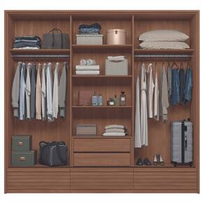 Esse Guarda Roupa é perfeito para você que procura sofisticação e versatilidade, possui detalhes ripados em MDF e o seu diferencial é o sistema flex, possibilitando variações na hora da montagem garantindo a elegância do ambiente